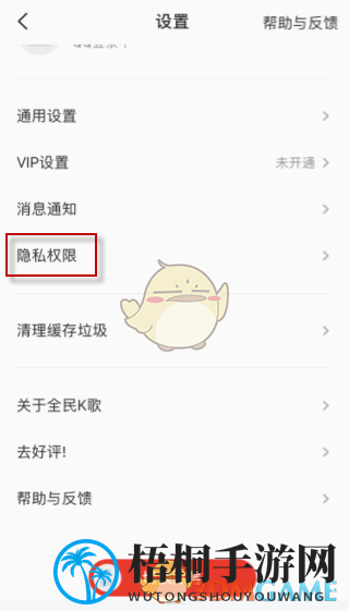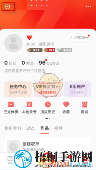1、进入全民k歌的“我的”页面,点触屏幕左上角的“设置”标志;