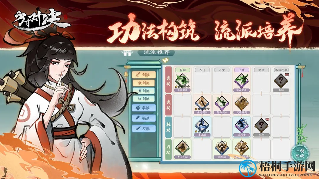 5、功法搭配推荐:螺旋九影、逍遥御风、八擒身法、扶摇天衡、疾风步、寒风身法、长生功。
