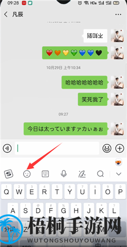 3、在输入法界面右下角找到那个略显忧郁的表情,轻轻一点,斗图模式激活,表情转为笑脸,此时输入文字,表情包便即刻生成。在输入框输入文字,表情便会自动弹出。