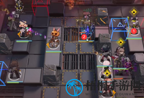 随后,左边继续上狙击支援输出,快速复活干员击毁左边柱子,右下角部署散狙。