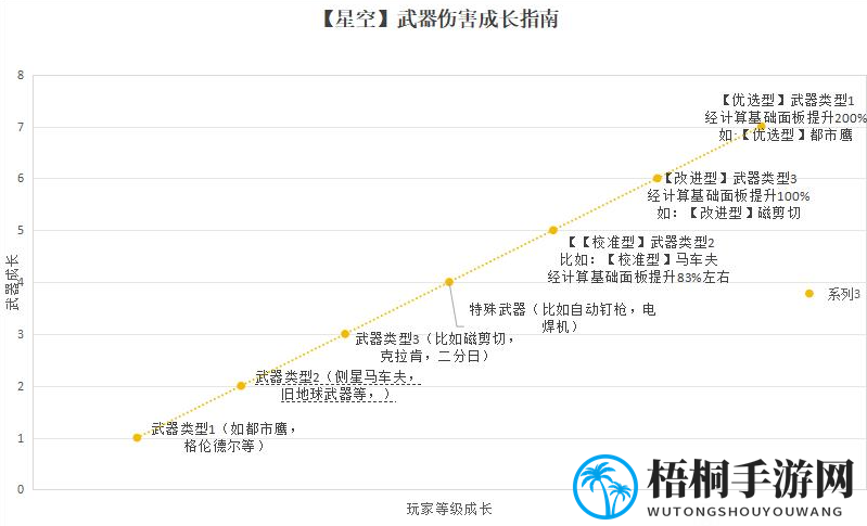 小贴士:图示横轴为玩家等级,纵轴显示武器强度。