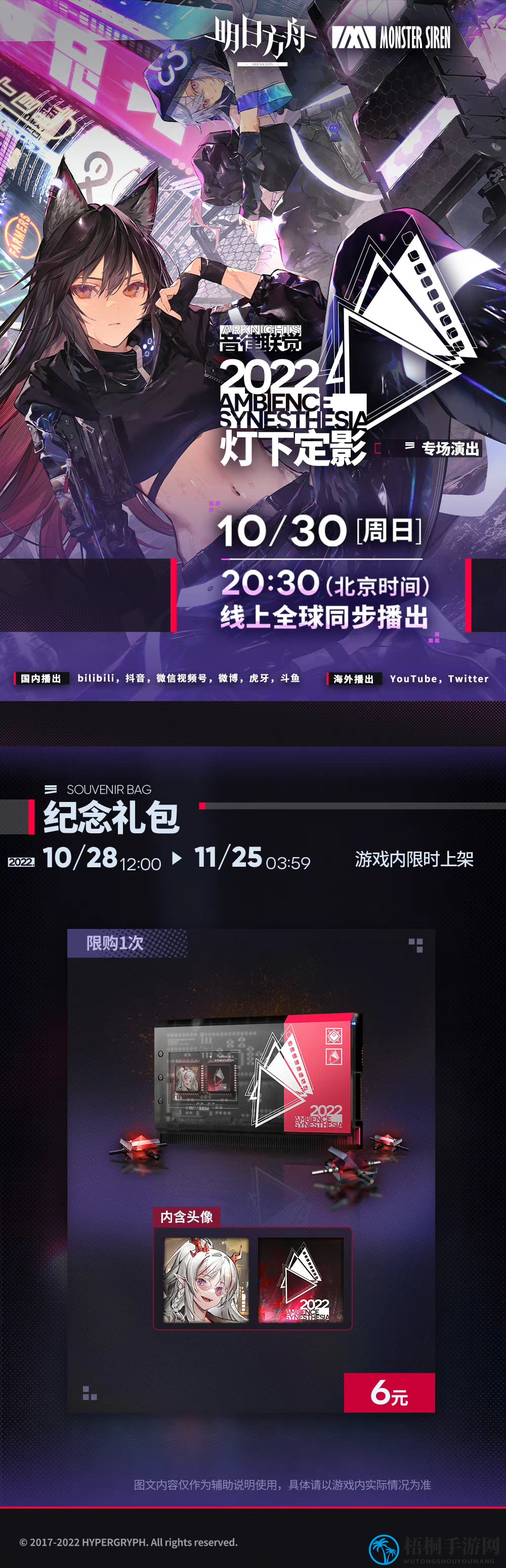 2022明日方舟音律联觉「灯下定影」演出正式确定,将在10月30日【周日】的20:30全球同步开启线上直播。