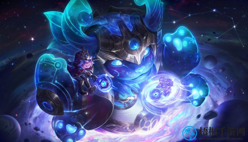 【星界 努努和威朗普】星界 努努和威朗普从小星系中浮现,周围环绕着星群与行星。努努坐在威朗普左肩上,手持发光水晶球。威朗普召唤出创意星座图案,两人协力推动星界能量穿越宇宙。