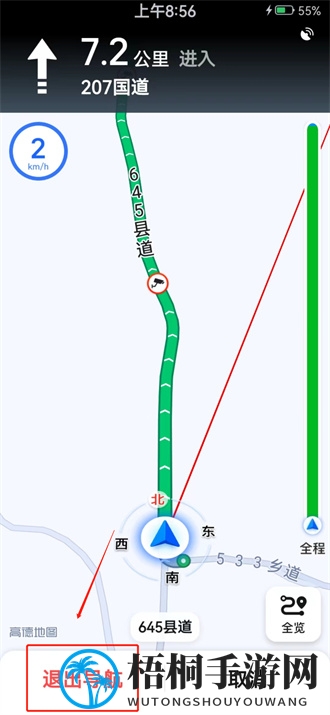 1、关键一步:务必先进入导航模式,才能发现隐藏的【退出导航】按钮;