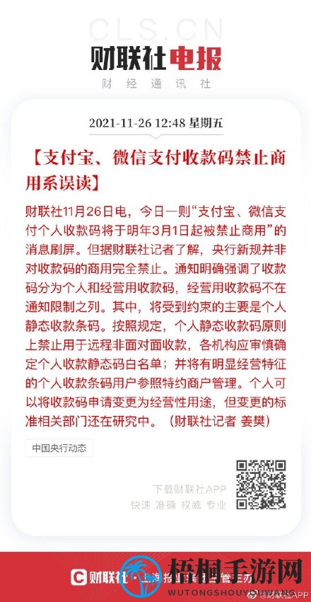 所谓支付宝微信支付收款码商用禁令的误读究竟是怎么回事?据财联社报道,央行的最新规定并非完全禁止收款码的商业使用。具体来说,通知中指出收款码分为个人与经营用途两种,其中经营用途收款码不受此限制。主要受影响的是个人静态收款条码。